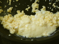 フライパンにバターをしいたら、2を入れ、スクランブルエッグを作ります。
