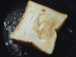 - フライパンにバターをしき、5の食パンを焼きます。弱火で片面2分前後で焼けます。