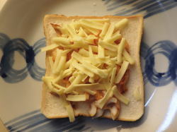 そのうえから、ピザ用チーズをのせたら、トースターで5分焼いて出来上がり。