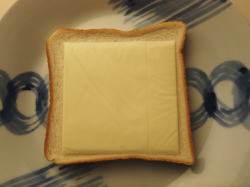 食パンにスライスチーズを乗せ、1を盛り付け、5分トーストしてください。