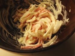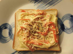 ※カニカマでトーストを作ってみたいとなりました。カニカマの独自の風味がとろけるチーズと合わさって風味の相乗を生み出しました!