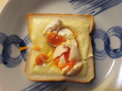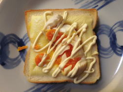 食パンにスライスチーズを乗せ、5分トーストしてください。