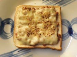 ※ただの納豆チーズトーストでもおいしいのに、そこに粒マスタードが加わったら?おいしさの爆上げです!