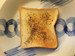 ※食パンの塩気がアクセントとなって、風味が引き立ちます。なかなか秀逸なトーストの出来上がり。