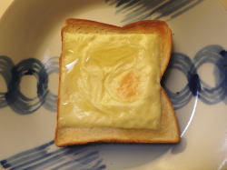 トーストの上から、オリーブオイルとタバスコを垂らして出来上がり。