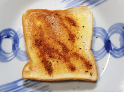 トーストした食パンにバターを塗って、激辛スパイスをふって出来上がり。
