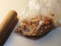 - 芋けんぴを袋に入れ、綿棒やすりこぎでたたいてください。