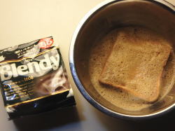 | ※コーヒーのほのかな苦みが、アイスの甘さとあいまって絶品なり。食欲のそそるトーストに仕上がりました。 |
