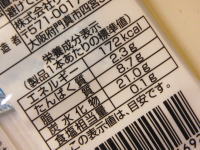 | カロリー | 1本 エネルギー 172kcal たんぱく質 2.3g 脂質8.7g 炭水化物 21.0g 食塩相当量 0.1g |