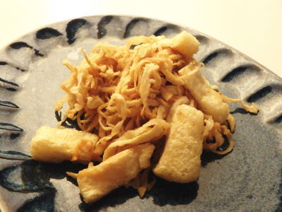 | 切り干し大根が お買い物のときに買うのが 軽いので 買いました。 んで、 本当はマヨ和えが好きなんだけれど、 それをすると太るので どうやったら 好きな味になるか 探索しました。 切り干し大根の中華炒め <材料> ・切り干し大根 30g ・油揚げ 1枚 ◎鶏がらスープの素 小さじ1.5 ◎しょうゆ 小さじ1 <作り方> 1)切り干し大根を5分水につけ戻します。 2)切り干し大根の水気をよく絞り、油揚げを 短冊切りします。 3)フライパンに2を入れ、からいりしたら、 ◎の調味料で味付けして出来上がり。 ![]() こいつは なかなか癖になるお味です。 切り干し大根の食感も最高! |