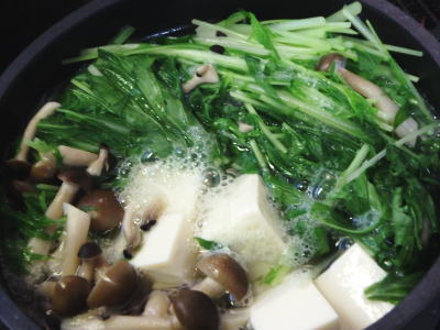 | 父は豆腐が大好きで、 よく湯豆腐を食べてました。 私はあまり湯豆腐は好きでは 無かったのですが、 今回はダイエットにいいというわけで チャレンジ。 なかなかおいしかったです。 ごちそう湯豆腐(味ポン) <材料> ・水 500ml ・豆腐 1個 150g ・水菜 1/2袋 ・しめじ 1/2袋 ◎白だし 大さじ2 ★味ポン お好み量 ★七味唐辛子 少々 <作り方> 1)水菜はざく切りに、豆腐は食べやすい大きさにカット。 しめじは石突を落として、手でほぐしてください。 2)鍋に水をはり、◎の調味料で味付けしたら、 1を盛り付けながら入れます。 3)しばし煮込んだら、出来上がり。 4)★のタレをつけながら食べてください。 ![]() さっぱりとおいしく頂けます。 豆腐以外の食材が、水菜としめじ なので、すっごくダイエットによさそう! となりました。 ただの味ポンで 食べるより、七味を投入した 味ポンで食べると なかなかハマるお味に仕上がりました。 P.S. しめに、漬けダレの味ポンを 鍋に入れ、スープとして飲むのも なかなかオツです。白だしが いい仕事してます! |