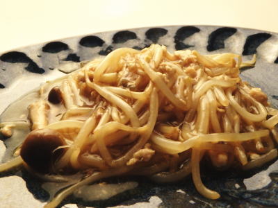 | もやしがありました。 ひき肉がありました。 しめじがありました。 そうして 出来たレシピです。 油を使わない ゆで炒めを考えた時、 出来上がったレシピです。 もやしとひき肉のとろみ炒め <材料> ・ひき肉 100g ・もやし 1袋 ・しめじ 1/2袋 ・水 200ml ◎オイスターソース 大さじ1 ◎しょうゆ 大さじ2 ◎鶏がらスープの素 小さじ1 ◎みりん 大さじ1 ◎酒 大さじ1 ◎しょうがチューブ 小さじ1 ★片栗粉 大さじ1 ★水 大さじ1 <作り方> 1)しめじの石突を切り落とし、手でほぐしてください。 2)フライパンに水を投入し、ひき肉をゆで炒めします。 3)ひき肉に火が通ったら、1ともやしを投入し、 しんなりくるまで炒めます。 4)◎の調味料をお椀で混ぜます。 5)◎の調味料をフライパンに入れ、味をつけます。 6)★で水溶き片栗粉を作り、ぐつぐつ煮立った お野菜に回しかけ、手早くかき混ぜ、均等に とろみをつけて出来上がり。 ![]() ゆで炒めをしていた時、 あ、このお湯を捨てずに、もう、 とろみをつけちゃおう!で出来たレシピです。 そのまま食べてもおいしいんですが、 ご飯にかけてもおいしいです。 今回は、セール品だったので、 鶏むね肉のひき肉でした。 脂が気になる人は、 先にひき肉をゆでて、 ざるにあげて、水洗いすると、 脂を取り除けるよ。 |