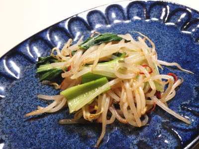 | 206.もやしとチンゲン菜のピリ辛オイスター炒め |