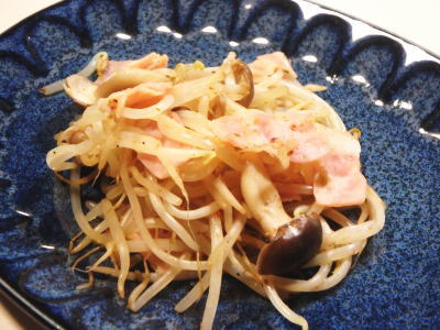 | 218.もやしとベーコンの麺つゆ仕立て |