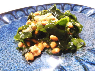 | 家にわかめがありました。 家に納豆がありました。 この2つを掛け合わせると どうなる? そうひらめいた時、 好奇心を追い払えませんでした。 わかめと納豆の和え物 <材料> ・わかめ 5g ・納豆 1パック <作り方> 1)わかめは水に5分浸し、戻します。 2)わかめと納豆と付属のタレ、からしを器に入れ、 よく混ぜます。 ![]() お好みで七味を入れてください。 すっごく簡単なのに、 栄養が満点で、 美味しい!が出来ました。 一押しです! |