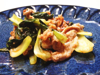 | 242.小松菜と豚コマのピリ辛ケチャ炒め |