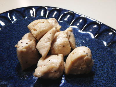 | ダイエットには ささみや胸肉がいいと 言われています。 というわけでチャレンジ ささみの香味ペースト炒め <材料> ・ささみ 2本 ・湯(ゆで用)適量 ・香味ペースト 10cm <作り方> 1)ささみを食べやすい大きさにカットし、ゆでます。 2)ゆであがったささみを香味ペーストで 炒めて出来上がり。 ![]() ささみのゆで方は後程。 味は美味しいんだけれど、 ささみ自体はおどろくほど、ぱっさぱさの 仕上がりでした。 というわけで、 めさめさ反省して 調べました。 強火でぱーっと 茹でたんでは いけないよと 書かれてました。 私は強火で ぱーっと茹でました。 こらー。 |