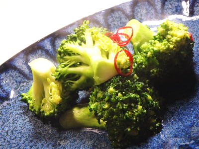 | ブロッコリーを確保しました。 ブロッコリーでペペロンチーノも いいんだけれど、 また別のを食べてみたい!と 成りました。 <材料> ・ブロッコリー 1個 ・水 大さじ3 ◎昆布茶 小さじ1 ◎塩 少々 ◎輪切り唐辛子 小さじ1 <作り方> 1)ブロッコリーをカットし、 茎も食べられるようにスライスします。 2)1の茎を2分30秒茹で、 房を2分ボイルします。 3)フライパンに2と水を投入し、 ◎の調味料で味付けして出来上がり。 ![]() お味は 絶妙でデリシャスなり。 油を一切使わないので、 ヘルシーでおいしいです! |