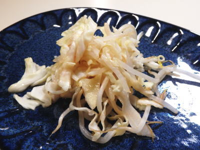 | 梅チューブでお料理したーい! と成りました。 <材料> ・キャベツ 100g ・もやし 100g ◎和風だし顆粒 小さじ1 ◎しょうゆ 小さじ1 ◎梅チューブ 小さじ1 <作り方> 1)キャベツは千切りに 2)1ともやしを耐熱容器に入れ、ラップをし 2分加熱します。 3)◎の調味料で味付けして出来上がり。 ![]() さっぱりと食べやすく、 食感も楽しい和え物です。 お好みで梅チューブを増やしても いいかもしれません! |