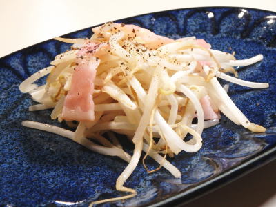 | いつもの 野菜炒めを格上げする 味付け! <材料> ・もやし 1袋 ・ベーコン 4枚 ◎鶏がらスープの素 小さじ2 ◎塩こしょう 少々 <作り方> 1)ベーコンを7mm幅にカットします。 2)1をフライパンに投入し、 続いてもやしを投入して炒めます。 3)◎の調味料で味付けして出来上がり。 ![]() 基本のお料理の ちょっと上を行く 野菜炒めです。 野菜炒めに 鶏がらスープは 重宝です!! |