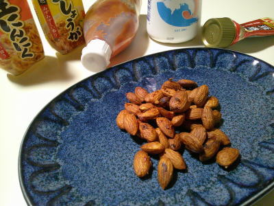 | エビチリ風に したら 美味しいのでは? と早速、実験! <材料> ・アーモンド 100g ◎ケチャップ 大さじ1 ◎豆板醤 小さじ1/2 ◎にんにくチューブ 小さじ1/2 ◎しょうがチューブ 小さじ1/2 ◎塩 少々 <作り方> 1)◎の調味料を フライパンで加熱します。 2)すぐにアーモンドを投入、 味を馴染ませます。 3)汁気がなくなるまで 炒めて出来上がり。 ![]() ※冷めたら硬くなります。 予想以上の おいしさに感動。 こいつは こいつは すごい! |