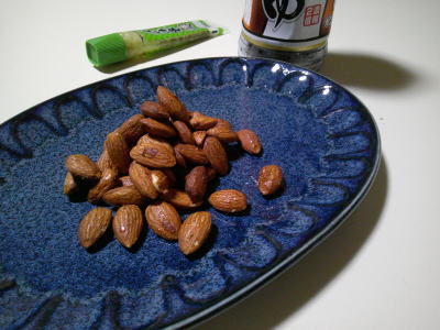 | わさびマヨを もっとヘルシーに 作りたい! となりました。 <材料> ・アーモンド 100g ◎わさび 小さじ1/2 ◎麺つゆ(2倍濃縮) 大さじ1 <作り方> 1)◎の調味料を フライパンで加熱します。 2)すぐにアーモンドを投入、 味を馴染ませます。 3)汁気がなくなるまで 炒めて出来上がり。 ![]() ※冷めたら硬くなります。 ヘルシーに仕上がって お味も満足に しあがりました! ぜひ作ってみてね! |