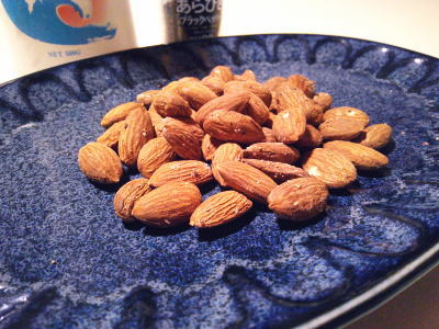 | シンプルな味付けも 試してみたくなりました。 <材料> ・アーモンド 100g ◎水 大さじ1 ◎塩 少々 ◎コショウ 少々 <作り方> 1)フライパンに◎の調味料を入れ よく混ぜ合わせます。 2)アーモンドを投入して 汁気がなくなるまで 炒めたら出来上がり。 ![]() ※冷めたら硬くなります。 塩は小さじ1/4前後という 感じです。 お好みで調整してください。 |