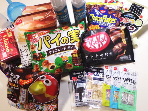 チョコレート菓子を盛り付けて出来上がり!