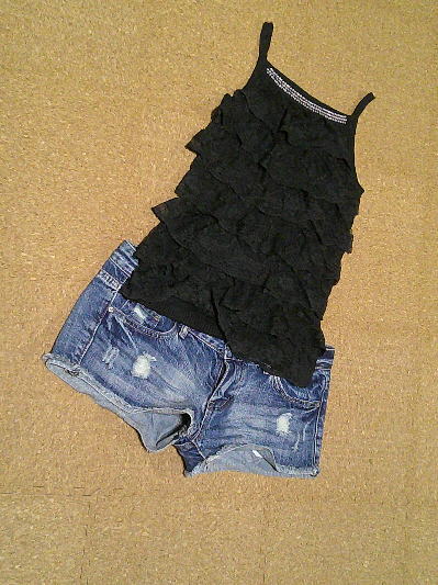 ■フリルのキャミソール黒(¥888)/SHOP ZERO