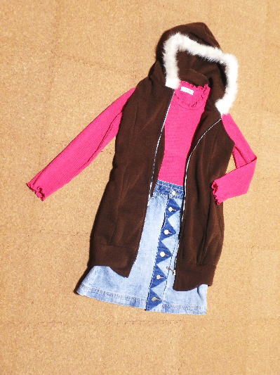 ■フード付きベスト茶(¥440)/LIP CREAM