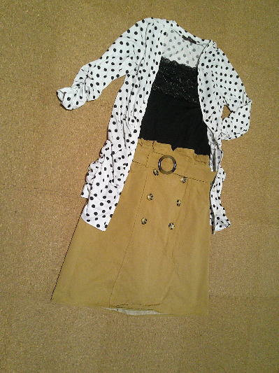 ■Vネックドットカーデガン(¥480)/Paliocollection ■レースキャミソール黒(¥不明)/ハッピータウン? ■ベルトミニスカート(¥不明)/Yahoo!ショッピング この水玉のカーデが 一目ぼれだったんですが、 まだまだ コーデを組みたいです。 |TOP|Back|Next| 2023/09/28作成 by綾香