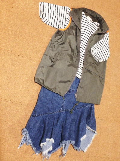 2)おこもりコーデ、カーキベスト
