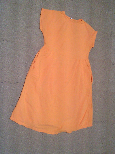 59)おこもりコーデ、オレンジワンピ