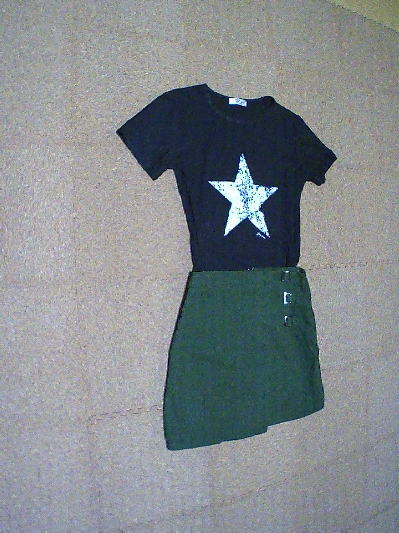 ■スター柄Tシャツ(¥500)/レギンス工房 ■無地カラーラップミニスカート(¥440)/ZOZOTOWN 久々に カーキ色を着用。 スターのTシャツは お気に入りになりそうです。 |TOP|Back|Next| 2024/06/27作成 by綾香
