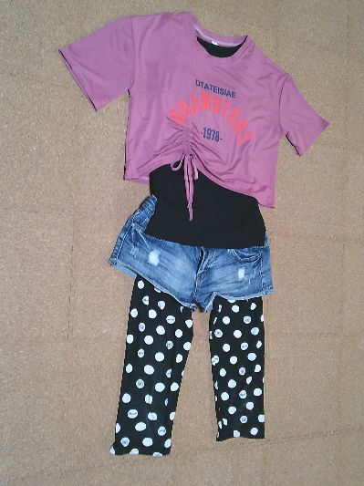 ■韓国風くしゅTシャツ(¥394)/小山ストア■フリルのキャミソール黒(¥888)/SHOP ZERO■7分丈水玉レギンス(¥931)/Superb Lifeヤフー店■クラッシュ短パンデニム(¥不明)/Yahoo!ショッピング ちょっと派手目に 決めてみました。 いいよね 韓国風くしゅ |TOP|Back|Next| 2025/08/27作成 by綾香