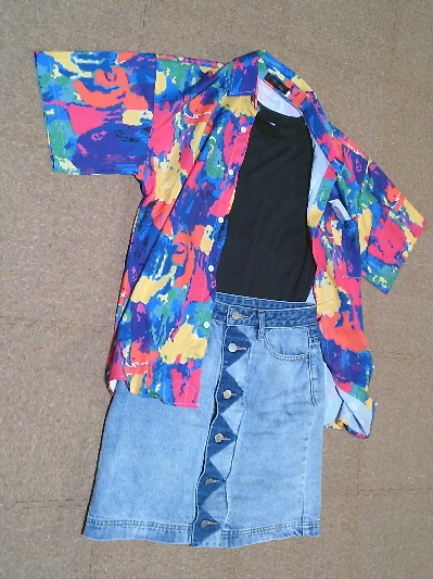 ■アロハシャツのカラフル迷彩(¥634)/やまとストアYahoo!店■ノースリカットソー黒(¥294)/やまとストアYahoo!店■ギザギザデニムスカート・ミニ(¥550)/select shop DOUBLE HEART このアロハが すっかりお気に入りに インナーも ばっちり決まりました。 |TOP|Back|Next| 2025/09/24作成 by綾香